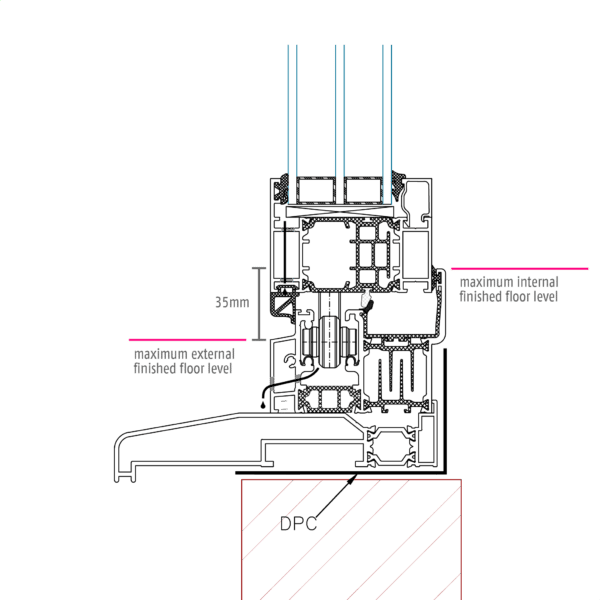 Our double rebated weathered threshold features a 35mm upstand against the frames of the doors seal, providing the most comprehensive weather performance. Available with or without a sill.