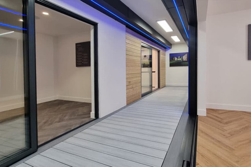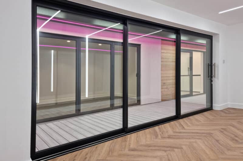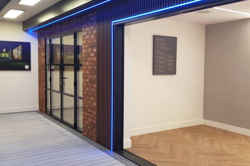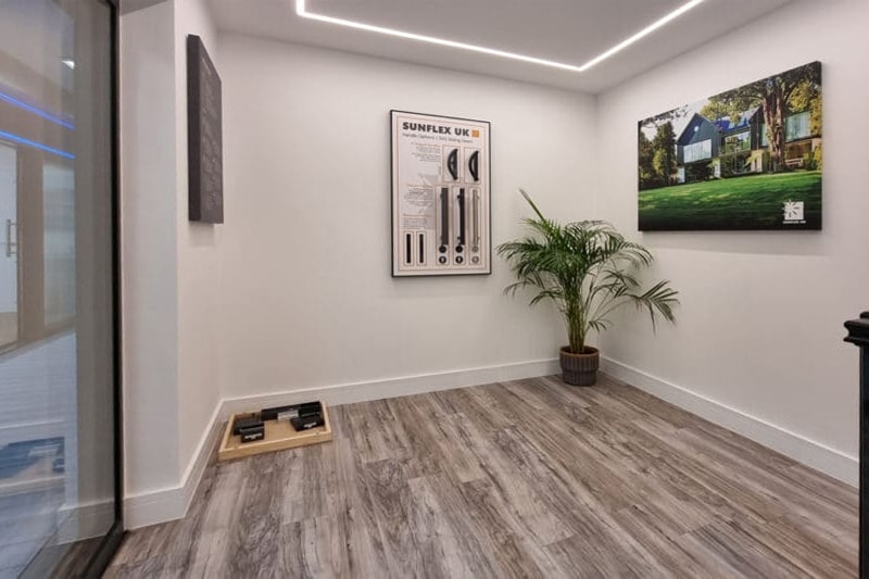Their new showroom features the SUNFLEX UK SVG20 and SVG30 sliding doors (one in a 2-pane, twin track configuration and the second in a 3-pane, triple track design) along with a set of our SF55i bifold doors, heritage French doors with sidelights, SF20 and SF22 sliding glass partitions and SAL 300 Slim and SEF windows.