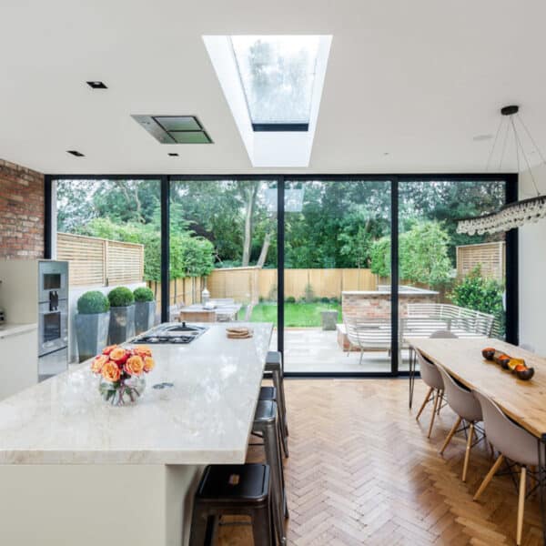 Our contemporary glass rooflights provide a stunning unobstructed opening with the thermally-broken aluminium frame sitting outside of the opening and completely hidden when viewed from below.