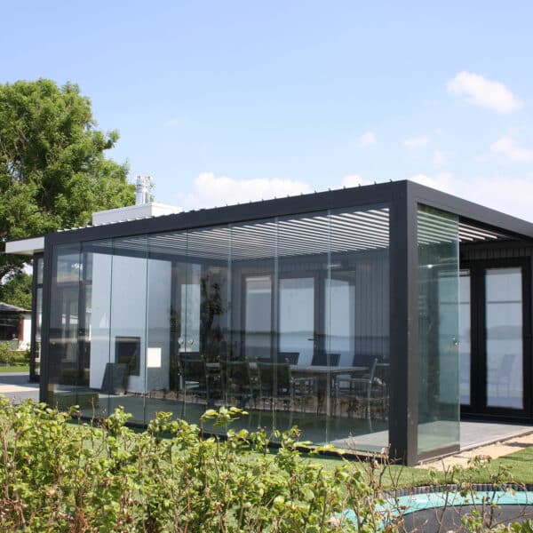 The systems have been designed to integrate with the SUNFLEX range of patio terrace roofs, enabling you to enclose your patio to keep out wind and rain and extend your living space later into the summer evenings and for longer periods throughout the year.