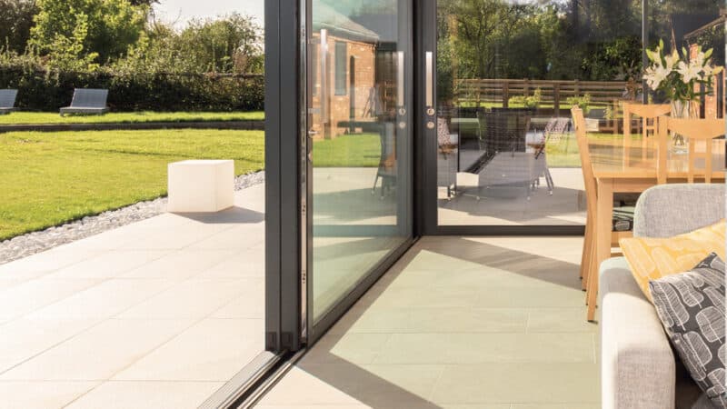 The SUNFLEX UK range of SVG aluminium sliding doors can be designed with an innovative flush stacking detail, where all the panels slide neatly behind the next to create a contemporary appearance when the doors are opened.